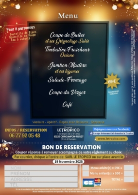 Infos & Réservations (avant le 19 novembre) : 06 77 92 05 48 – Facebook : Le Tropico
