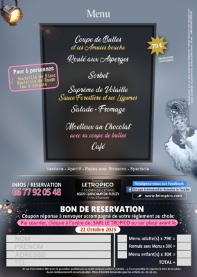 Infos & Réservations (avant le 22 octobre) : 06 77 92 05 48 – Facebook : Le Tropico