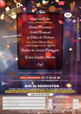 Infos & Réservations (avant le 16 avril) : 06 77 92 05 48 – Facebook : Le Tropico