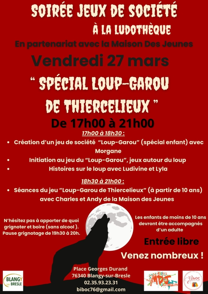 Vendredi 27 mars : Soirée « Loup-garou de Thiercelieux »