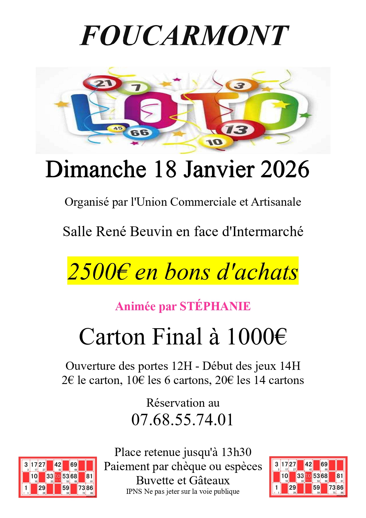L’union commerciale et artisanale de Foucarmont organise un loto le dimanche 18 janvier