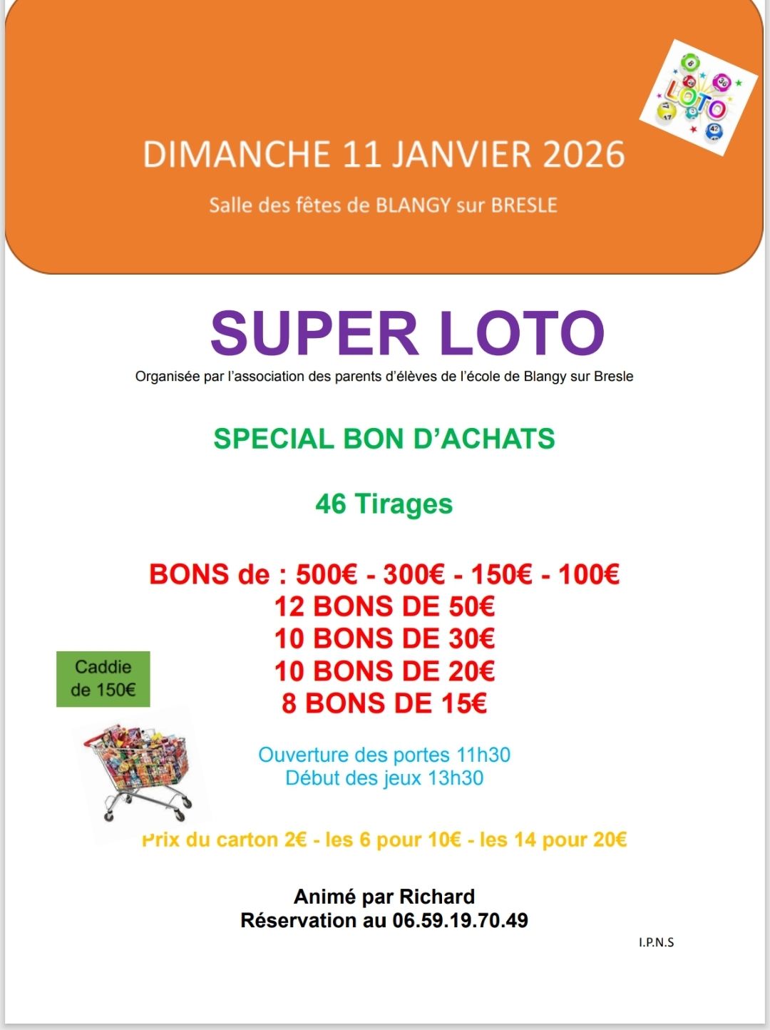 Loto proposé par l’APE Ecole Frechon – Parents d’élèves
