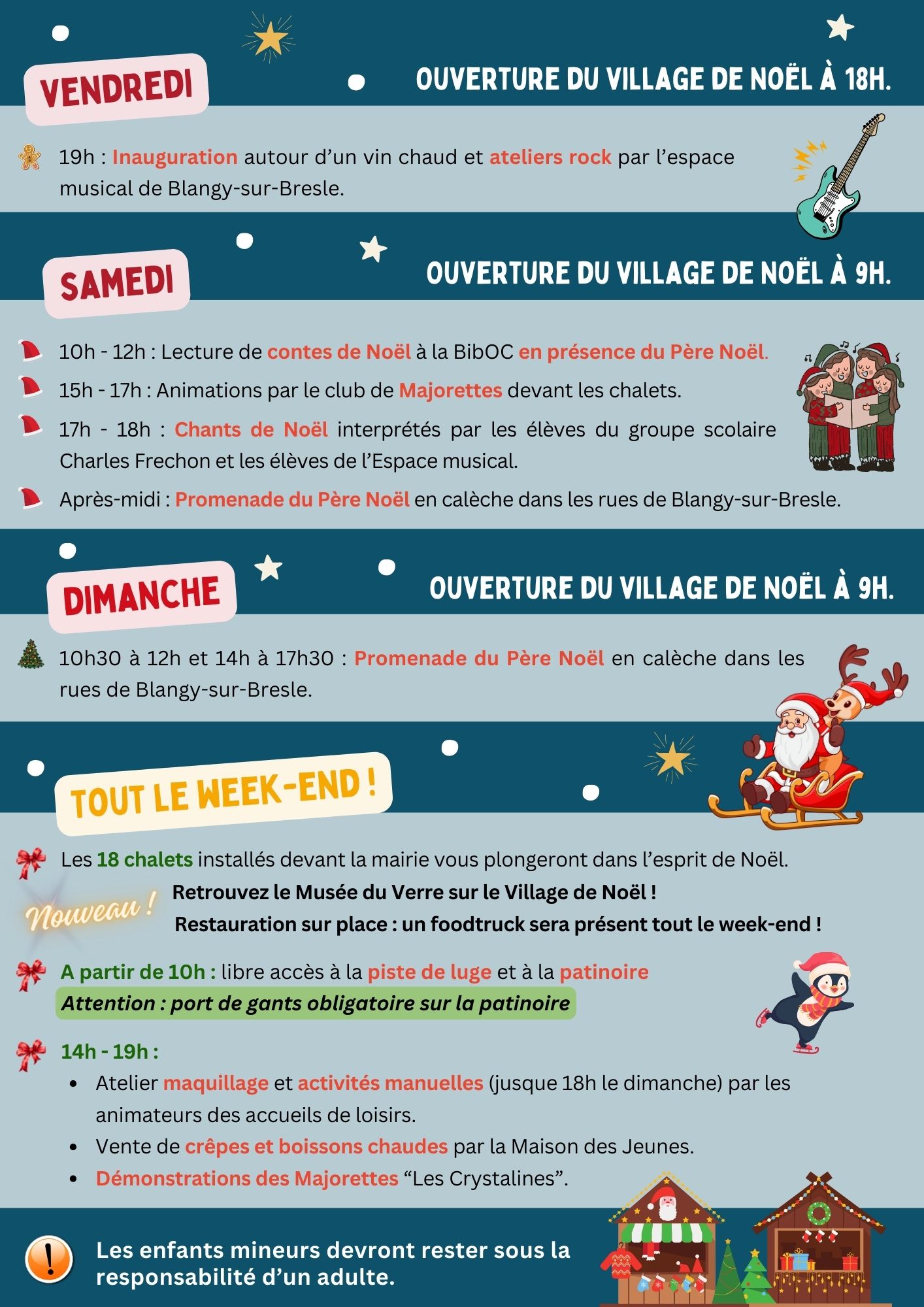 Au programme : Vin chaud, musique, chants de Noël, majorettes … et bien plus dans le programme à venir.