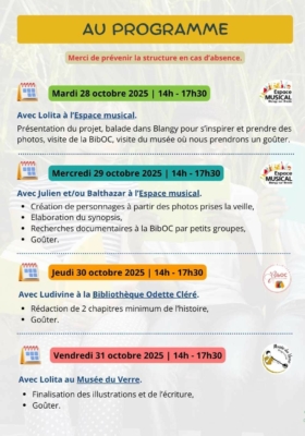 C’est parti pour les vacances de la Toussaint … retrouvez le programme complet des animations