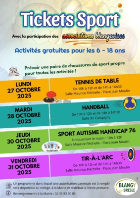 Du 27 au 31 oct. - Tickets sports à Blangy-sur-Bresle