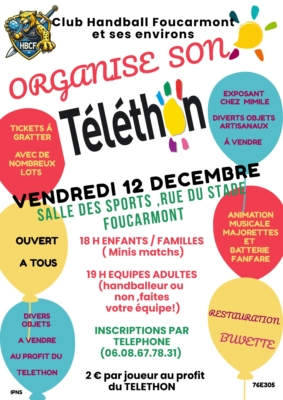 Le club de handball de Foucarmont et ses environs organise son Téléthon. Rendez-vous à la salle des sports – 2€/joueur – Ouvert à tous