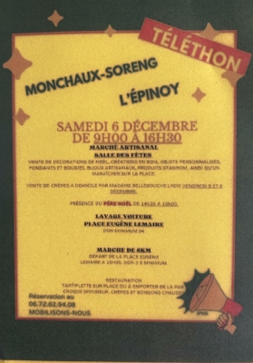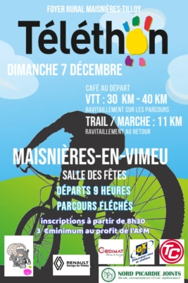 – Repas Téléthon à la salle des fêtes de Maisnières à partir de 19h30