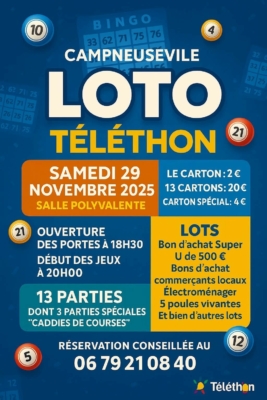 Loto du Téléthon proposé par l’association Campneuseville d’Hier et d’aujourd’hui