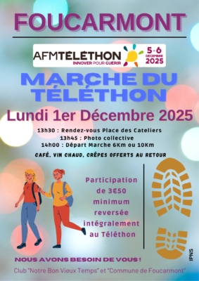Inscription de 3.00€ minimum – Manifestation au profit de l’AFM Téléthon 2025