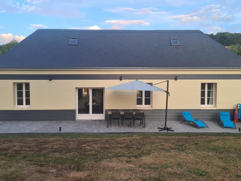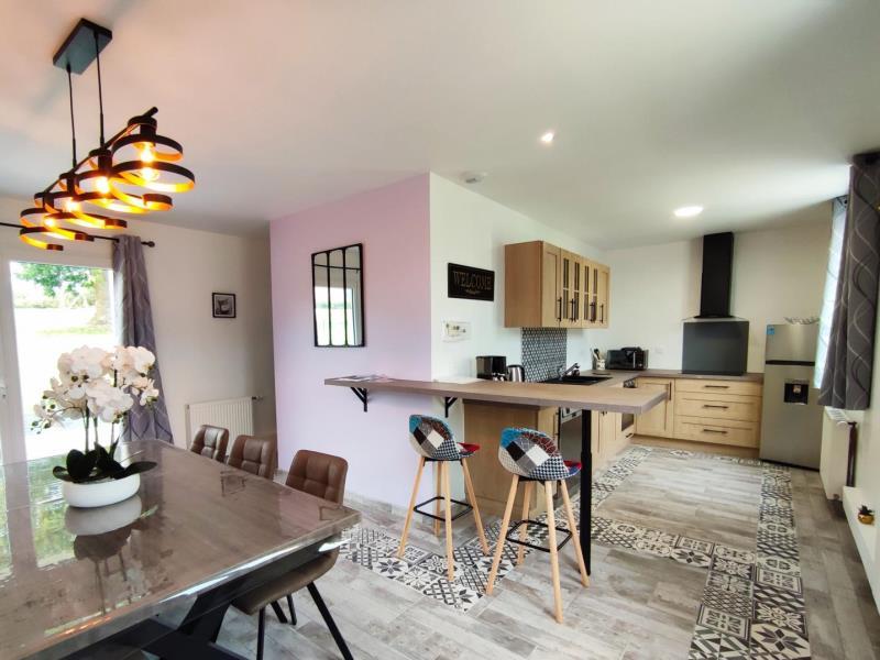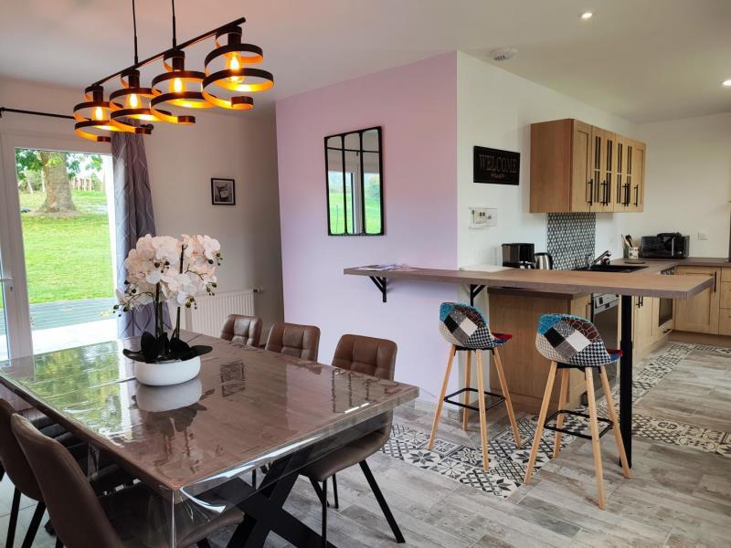 Situé au coeur de la Vallée de la Bresle, à l'orée de la forêt, au départ de plusieurs chemins de randonnées, venez vous détendre au Frêne Chantant : entre campagne verdoyante, où les étangs et les rivières se fondent dans la forêt d'Eu et mer en baie de Somme, vous trouverez le calme et l'air vivifiant de la mer. Le gîte est doté de 2 grandes terrasses où vous vous poserez au gré du levé ou du couché de soleil et d'un grand jardin de 2000m². Le Frêne chantant est le lieu idéal pour se retrouver et se relaxer en couple, entre amis ou en famille : profitez d'un intérieur chaleureux au cœur de la nature. L'atelier du propriétaire se trouve sur le terrain mitoyen à celui du gîte (pas de nuisances). A 20 minutes des plages de la Baie de Somme, tous commerces à Gamaches à 4km et à Blangy sur Bresle à 9km. À noter, ce gîte n'est pas en formule tout compris : certaines options sont en supplément. Au rez-de-chaussée : Entrée dans grande pièce de vie chaleureuse (40m²) comprenant - cuisine ouverte (réfrigérateur avec partie congélateur, évier 1 bac, lave-vaisselle, plaque induction 3 feux, micro-ondes, four multifonction, cafetière à filtres) avec table snack et 2 tabourets hauts, - salle à manger - salon (TV 105cm avec Netflix à disposition, enceinte bluetooth) - 1 chambre 1 lit 2 personnes 140x190cm, - 1 chambre 2 lits 2 personne 90x190cm, - salle d'eau avec grande douche 90x120cm, lave-linge, - wc, Equipement bébé (lit parapluie, matelas à langer). L'étage n'est, pour le moment, pas accessible puisque pas encore aménagé. Extérieur : 2 terrasses de 37m² chacune à l'avant et à l'arrière de la maison, jardin complétement clos à l'avant du gîte, partiellement à l'arrière (le fond du jardin est séparé d'une grande prairie par une clôture en barbelés). Salons de jardin, barbecue. Parking privatif fermé.